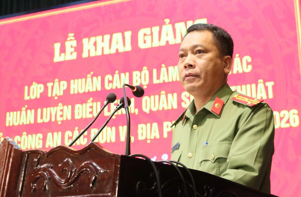 Phát biểu chỉ đạo tại lễ khai giảng, Đại tá Nguyễn Trung Kiên, Phó Bí thư Đảng ủy, Phó Giám đốc Công an tỉnh nhấn mạnh: “Công tác huấn luyện điều lệnh, quân sự, võ thuật có ý nghĩa đặc biệt quan trọng trong việc xây dựng tác phong chính quy, kỷ luật, bản lĩnh chiến đấu và khả năng sẵn sàng chiến đấu của mỗi cán bộ, chiến sĩ. Vì vậy, các học viên tham gia lớp tập huấn cần nêu cao tinh thần trách nhiệm, chấp hành nghiêm nội quy, quy chế lớp học; chủ động nghiên cứu, tiếp thu đầy đủ các nội dung được truyền đạt, kết hợp chặt chẽ giữa lý thuyết và thực hành để vận dụng hiệu quả vào công tác huấn luyện tại đơn vị sau khi kết thúc khóa học”. Đồng chí Phó Giám đốc Công an tỉnh cũng yêu cầu đơn vị tổ chức lớp tập huấn chuẩn bị đầy đủ điều kiện về cơ sở vật chất, giáo án, đội ngũ giảng viên; tổ chức huấn luyện khoa học, bảo đảm chất lượng, hiệu quả và tuyệt đối an toàn trong quá trình tập luyện.