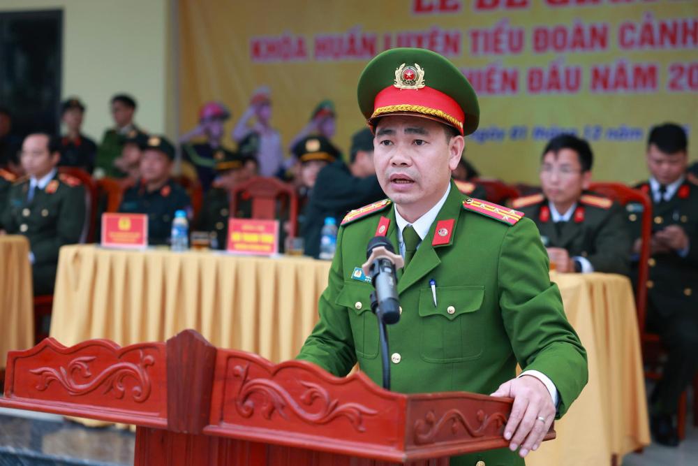 Phát biểu tại buổi lễ, Thiếu tướng Nguyễn Xuân Thao nhấn mạnh: “Trong suốt thời gian huấn luyện với cường độ cao, các đồng chí học viên đã được trang bị đầy đủ kỹ năng chiến đấu; trình độ chuyên môn, nghiệp vụ, thể lực, ý chí và bản lĩnh được nâng lên rõ rệt. Học viên sử dụng thành thạo các loại vũ khí, công cụ hỗ trợ, phương tiện nghiệp vụ; kỹ năng phòng cháy, chữa cháy, cứu nạn cứu hộ, sơ cấp cứu được củng cố; điều lệnh, quân sự, võ thuật, lễ tiết, tác phong được rèn luyện bài bản. Đây sẽ là lực lượng nòng cốt trong công tác huấn luyện quân sự, võ thuật tại các đơn vị cơ sở.”