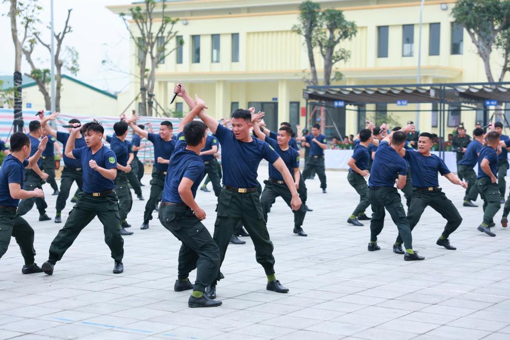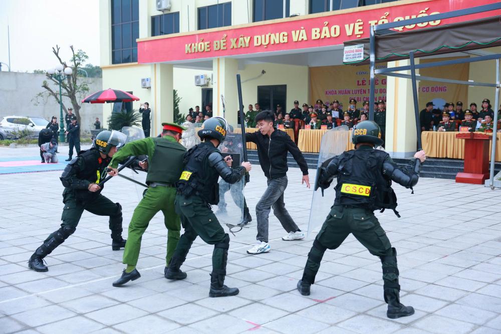 Tại buổi lễ, các đại biểu đã theo dõi màn biểu diễn kỹ – chiến thuật, võ thuật CAND và tình huống giả định đánh bắt các đối tượng buôn bán trái phép chất ma túy, thể hiện kết quả rèn luyện thực tế của học viên.