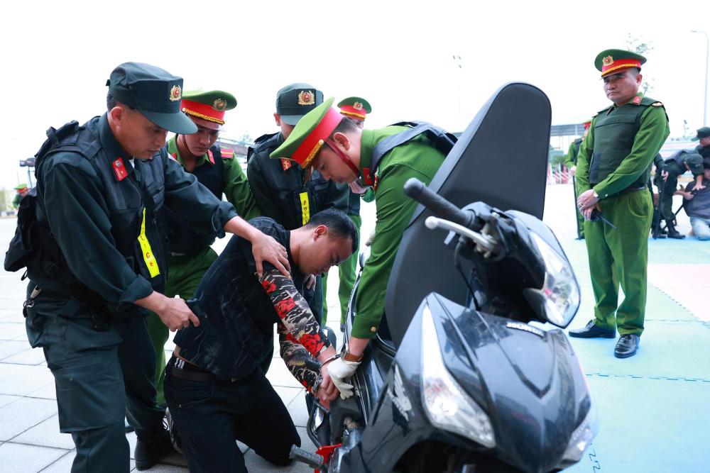 Các tình huống nghiệp vụ được xây dựng sát thực tiễn như khống chế đối tượng manh động, đối tượng sử dụng hung khí; áp giải người vi phạm; triển khai đội hình vây bắt trong khu vực phức tạp. Từng bài tập yêu cầu sự phối hợp nhịp nhàng, thao tác chuẩn xác, tuân thủ quy trình nghiệp vụ và đảm bảo an toàn tuyệt đối cho Nhân dân và lực lượng tham gia.