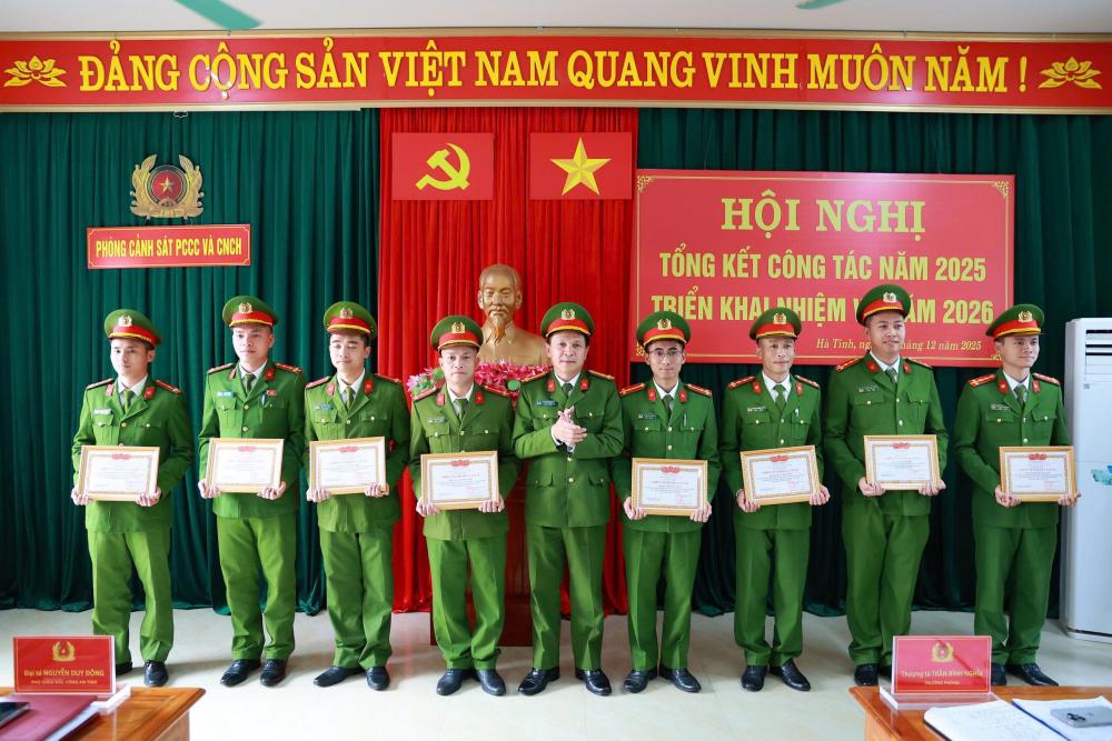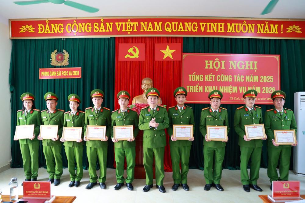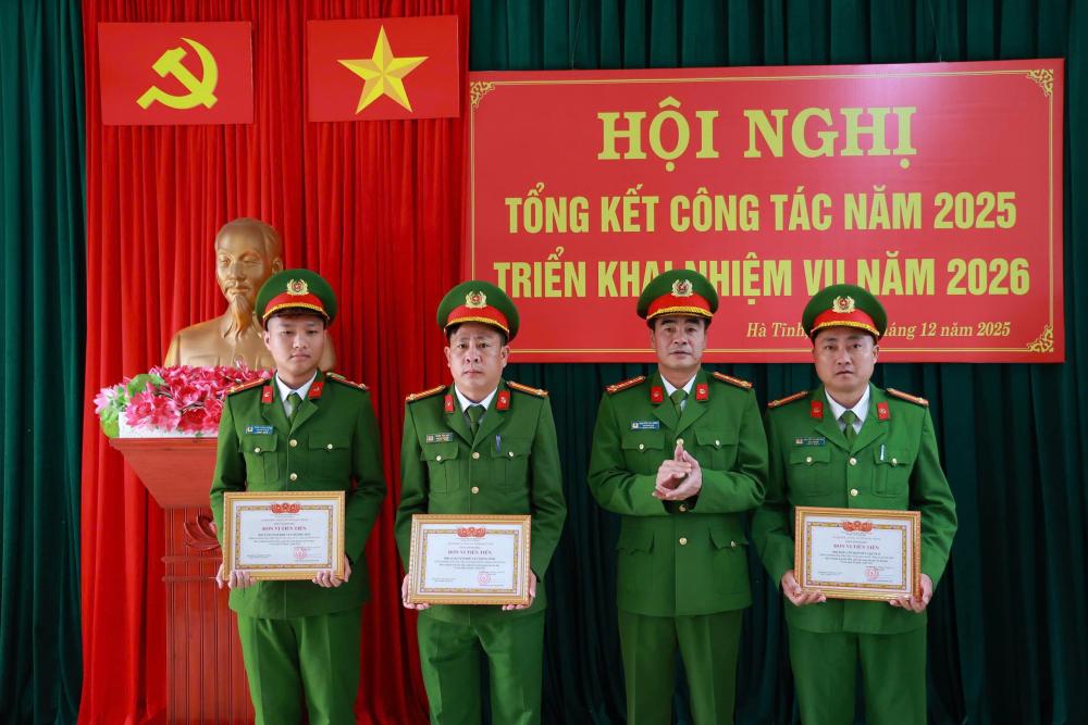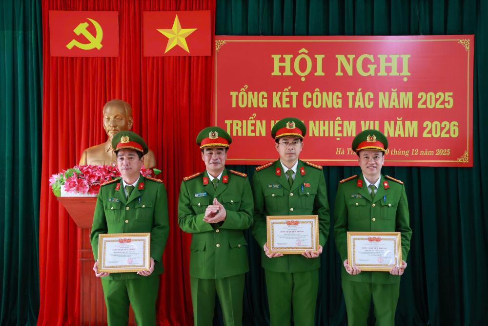 Nhân dịp này, nhiều tập thể, cá nhân có thành tích xuất sắc trong thực hiện nhiệm vụ chính trị và phong trào thi đua năm 2025 đã được Giám đốc Công an tỉnh Hà Tĩnh tặng Bằng khen, Giấy khen.