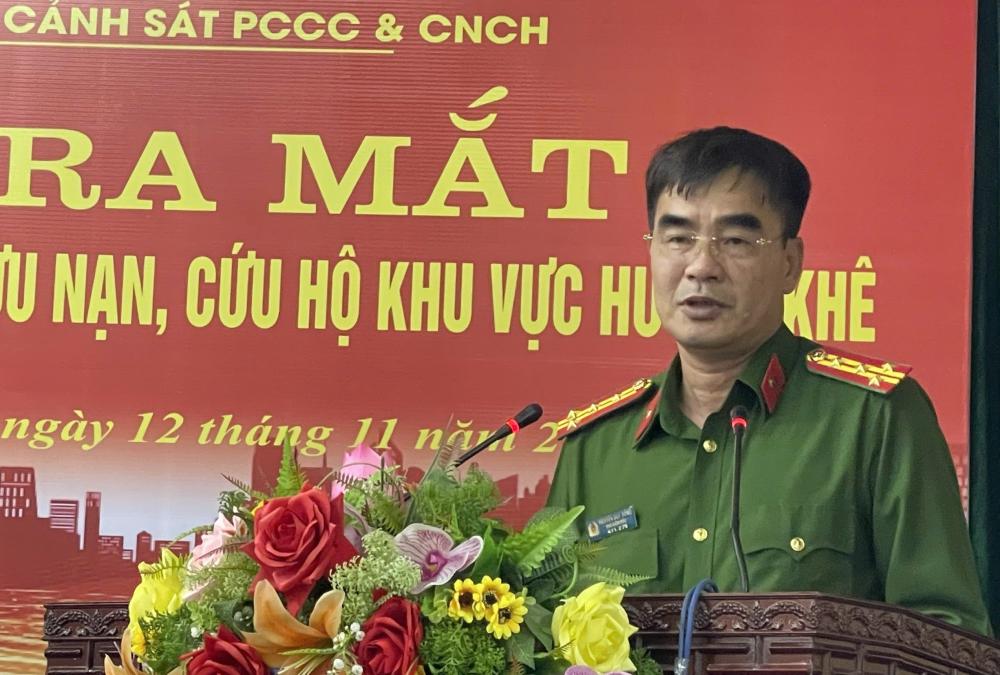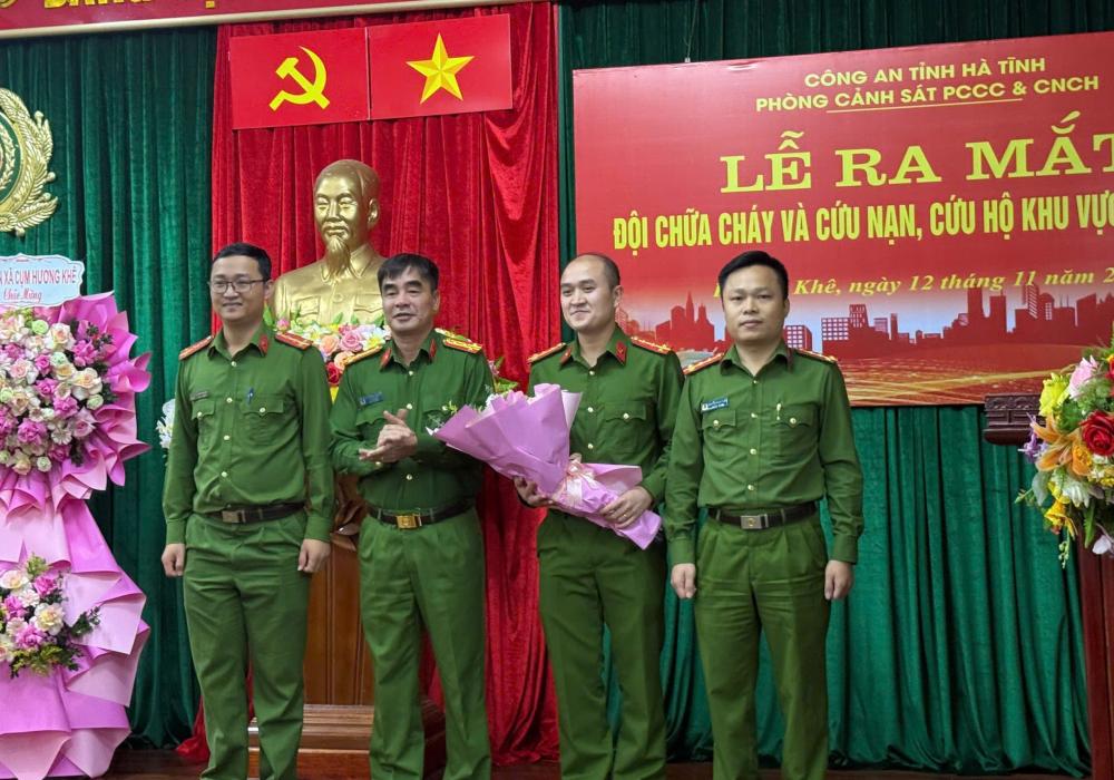 Tại buổi lễ, lãnh đạo Phòng Cảnh sát PCCC và CNCH đã công bố quyết định của Giám đốc Công an tỉnh về việc thành lập Đội Chữa cháy và CNCH khu vực Hương Khê.