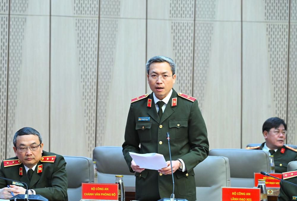 Thiếu tướng Nguyễn Quốc Toản, Chánh Văn phòng Bộ Công an trình bày báo cáo tình hình, kết quả công tác tháng 01/2026 của lực lượng CAND.