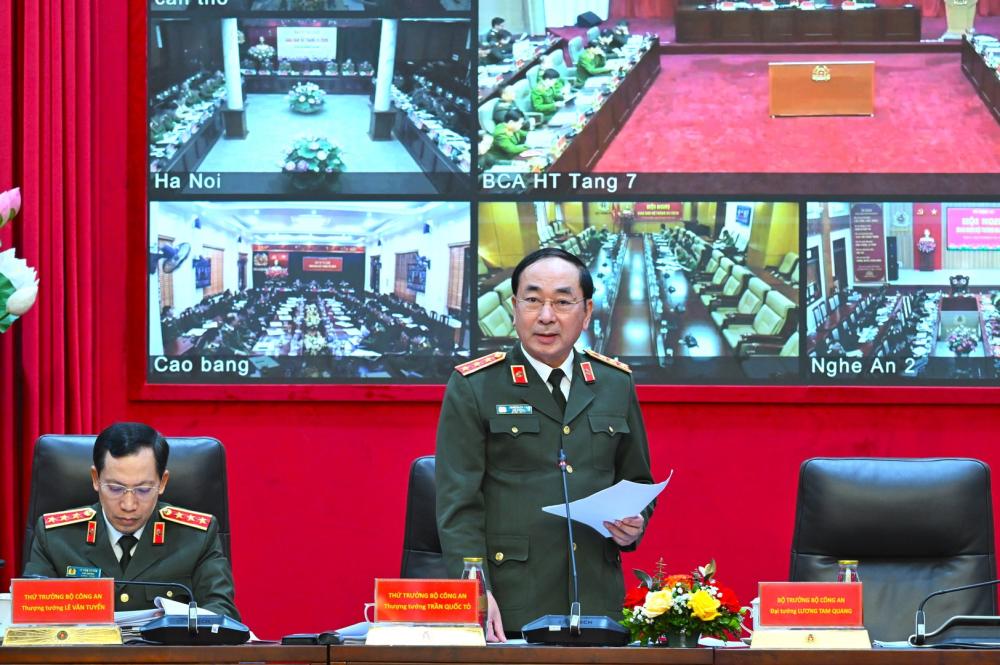 Đồng tình với phương hướng công tác tháng 02/2026 đã được nêu ra trong Báo cáo trung tâm, Bộ trưởng Lương Tam Quang nhấn mạnh các nhóm nhiệm vụ trọng tâm cần thực hiện thời gian tới. Trong đó, tập trung cụ thể hóa, triển khai ngay Nghị quyết Đại hội XIV của Đảng với tinh thần gương mẫu, tiên phong. Triển khai tinh thần của Đại hội XIV trong mọi mặt công tác công an, đó là “Lựa chọn đúng – triển khai nhanh – làm đến nơi đến chốn – đo lường bằng kết quả”; “làm thật mạnh, làm thật nhanh, làm đến nơi đến chốn”; “mọi việc phải có người chịu trách nhiệm đến cùng; không để tình trạng “cha chung không ai khóc”, “chuyển trách nhiệm cho nhau”…