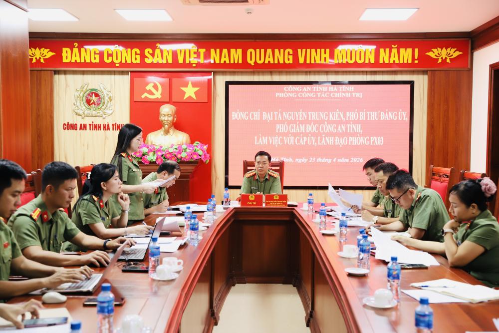 Theo đó, trong Quý I/2026, Phòng Công tác chính trị đã chủ động, kịp thời tham mưu cho Đảng ủy, Lãnh đạo Công an tỉnh toàn diện trên tất cả các lĩnh vực thuộc chức năng, nhiệm vụ của phòng. Trong đó, nổi bật là tham mưu Đảng ủy Công an tỉnh tổ chức quán triệt kịp thời các Nghị quyết chiến lược của Bộ Chính trị; Nghị quyết Đại hội XIV của Đảng và Nghị quyết XX của tỉnh Đảng bộ; tham mưu ban hành Nghị quyết chuyên đề về Đổi mới, nâng cao hiệu quả công tác chính trị, tư tưởng trong Công an Hà Tĩnh; tham mưu tổ chức 15 hoạt động lớn như: Chương trình Tết ấm lòng dân - Xuân trọn nghĩa tình, Chương trình MV ca nhạc Mừng Đảng Mừng Xuân, Chương trình “Ngày chạy Olympic- Vì sức khỏe cộng đồng, Vì An ninh Tổ quốc”, Chương trình Tuyên dương gương Thanh niên, Phụ nữ tiêu biểu; Gặp mặt Thanh niên Công an đảm nhận chức vụ Phó Bí thư Đoàn xã, Hội thi tuyên truyền ca khúc cách mạng, Giải bóng chuyền Cụm thi đua số 5, Bộ Công an; Hội nghị ký giao ước thi đua của Cụm thi đua số 5; Tập huấn công tác tuyên truyền, công tác thi đua khen thưởng; Tập huấn Điều lệnh, quân sự võ thuật.... Các mặt công tác xây dựng Đảng, xây dựng lực lượng của đơn vị, chi bộ được quan tâm và thực hiện có hiệu quả.