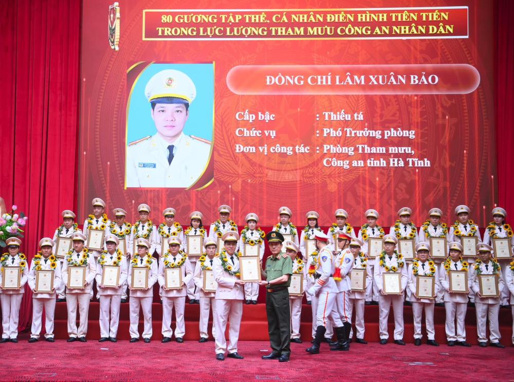 Tại chương trình, Ban Tổ chức đã tuyên dương 80 gương tập thể, cá nhân điển hình tiên tiến thuộc lực lượng Tham mưu CAND; Bộ trưởng Lương Tam Quang trao chứng nhận điển hình tiên tiến trong phong trào thi đua lập thành tích chào mừng kỷ niệm 80 năm Ngày truyền thống lực lượng Tham mưu tặng các điển hình tiên tiến.