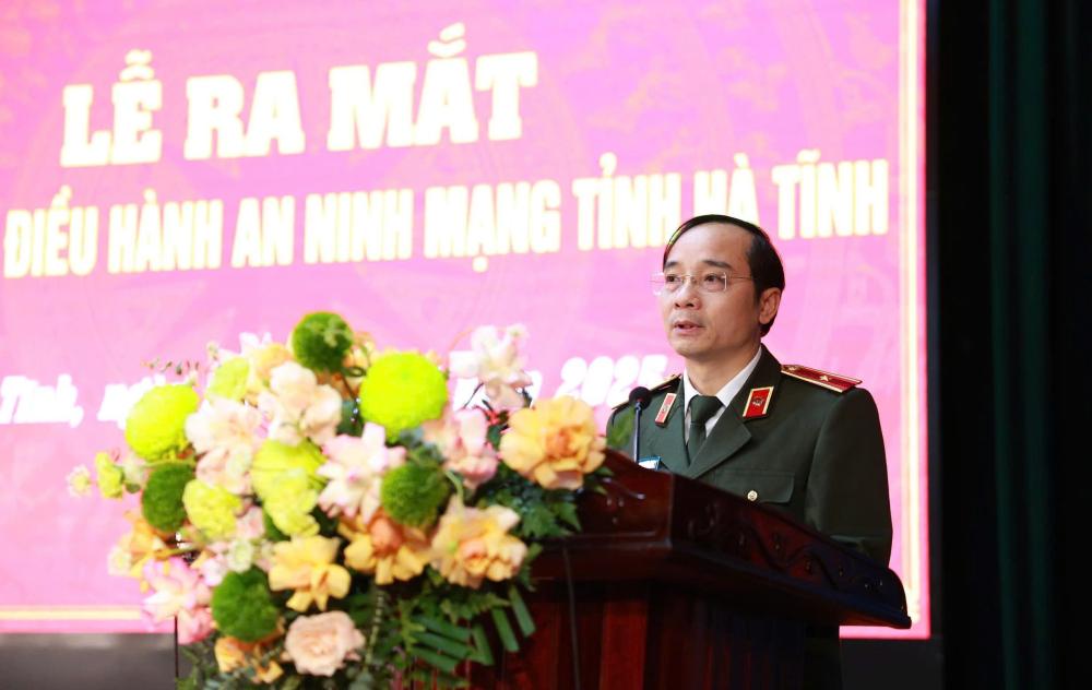 Phát biểu tại buổi lễ, Thiếu tướng Nguyễn Xuân Thao, Giám đốc Công an tỉnh, nhấn mạnh: Việc đưa Trung tâm vào vận hành là bước chuyển quan trọng trong công tác bảo đảm an ninh mạng của lực lượng Công an tỉnh Hà Tĩnh, đồng thời khẳng định quyết tâm chính trị của toàn lực lượng. Đồng chí đề ra các nhiệm vụ trọng tâm, đó là: vận hành ổn định, phát hiện sớm, cảnh báo và xử lý kịp thời các nguy cơ tấn công mạng, mở rộng phạm vi giám sát an ninh mạng tới Sở Nội vụ và 69 xã, phường; triển khai tối thiểu 2.000 tài khoản phần mềm phòng, chống mã độc tập trung, tăng cường phối hợp với Trung tâm An ninh mạng quốc gia và các cơ quan chức năng trong công tác chia sẻ thông tin, cảnh báo sớm, điều tra và xử lý tội phạm công nghệ cao, đào tạo, bồi dưỡng đội ngũ cán bộ kỹ thuật chuyên sâu, đáp ứng yêu cầu ngày càng cao trong nhiệm vụ bảo vệ an ninh mạng.