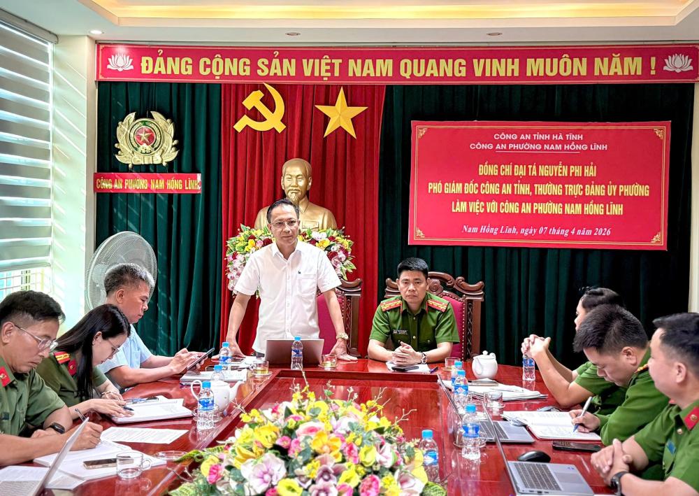 Phát biểu tại buổi làm việc, đồng chí Đại tá Nguyễn Phi Hải và các đồng chí trong Thường trực Đảng uỷ phường ghi nhận, biểu dương tinh thần trách nhiệm và những kết quả mà Công an phường Nam Hồng Lĩnh đã đạt được trong thời gian qua, góp phần giữ vững ổn định an ninh chính trị, trật tự an toàn xã hội trên địa bàn. Giao nhiệm vụ cho lực lượng Công an phường trong thời gian tới cần tiếp tục phát huy vai trò nòng cốt trong công tác bảo đảm an ninh, trật tự tại cơ sở; chủ động nắm chắc tình hình, không để bị động, bất ngờ trong mọi tình huống; thực hiện công tác an ninh chủ động, tăng cường công tác phòng ngừa xã hội, phòng ngừa nghiệp vụ; đẩy mạnh đấu tranh, trấn áp các loại tội phạm, phấn đấu xây dựng mô hình “Phường Nam Hồng Lĩnh không có tội phạm ma tuý”.