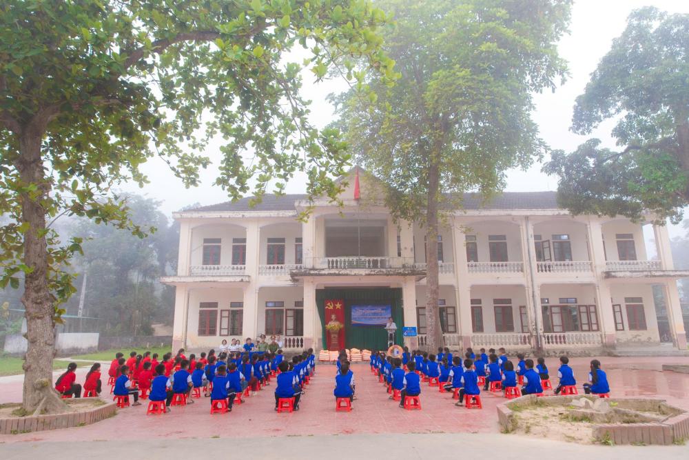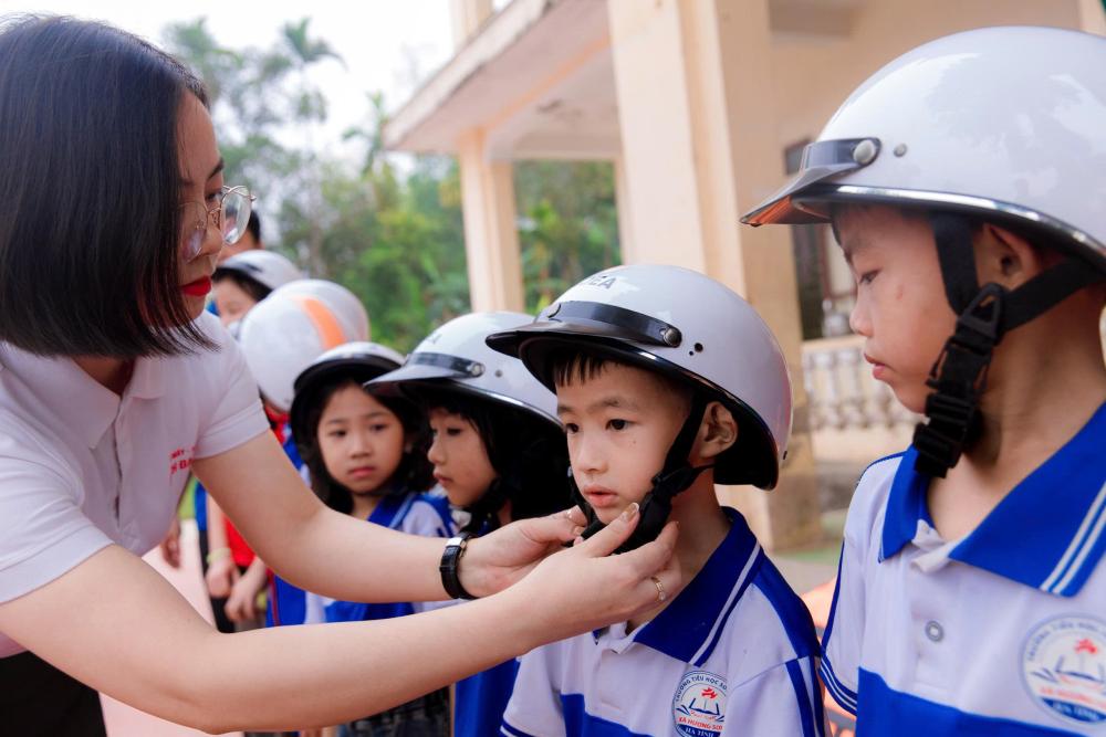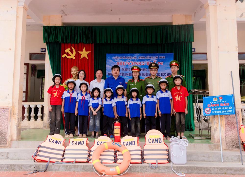 Nhân dịp này, Công an xã Hương Sơn đã phối hợp với Công ty TNHH thương mại và dịch vụ Bách Đại Dũng trao tặng 10 mũ bảo hiểm cho các em học sinh có hoàn cảnh khó khăn tại điểm lẻ Trường Tiểu học Sơn Trung.