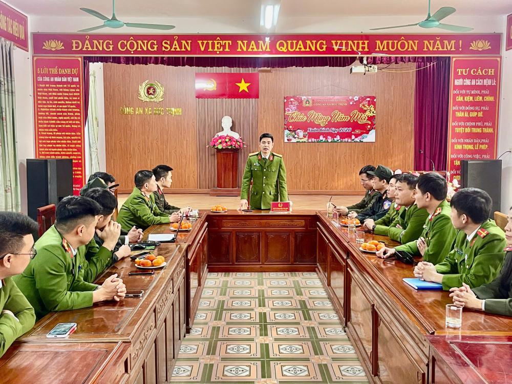 Đoàn đã trực tiếp đến làm việc, thăm hỏi và chúc Tết Công an xã Đức Thịnh, Đức Quang, Đức Minh, Đức Thọ và Đức Đồng. Tại mỗi điểm đến, đồng chí Phó Giám đốc Công an tỉnh đã nghe báo cáo nhanh về tình hình an ninh, trật tự, công tác trực, ứng trực và các phương án bảo đảm an toàn địa bàn trong dịp Tết Nguyên đán.