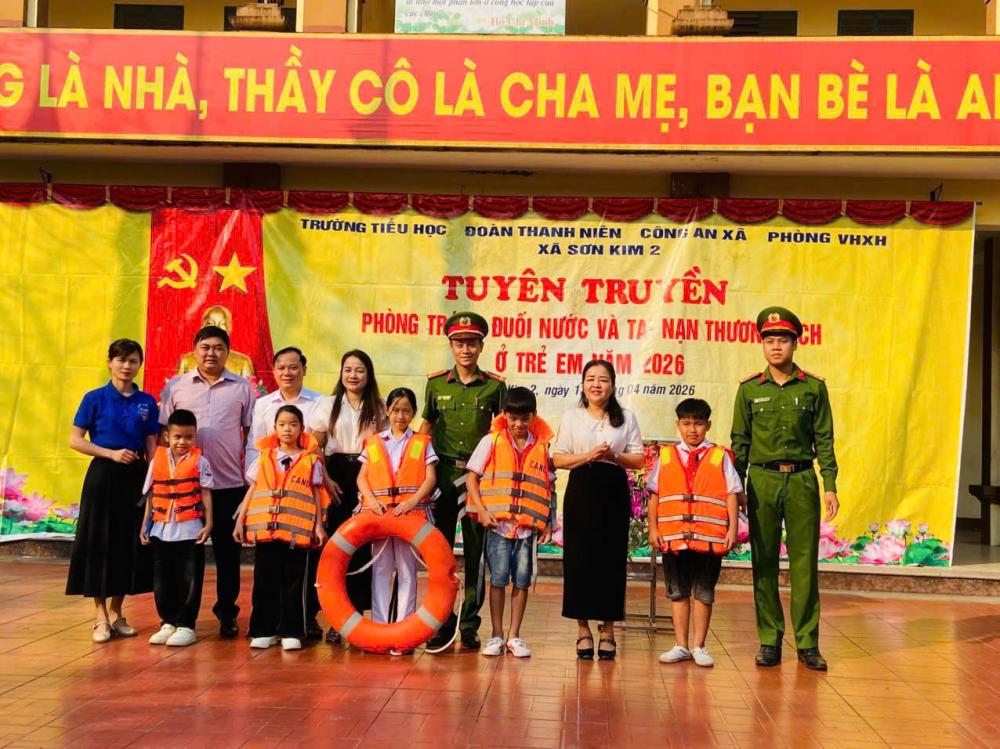 Tại Trường Tiểu học Sơn Kim 2, sáng ngày 13/4/2026, Công an xã Sơn Kim 2 phối hợp với Đoàn xã và nhà trường tổ chức buổi tuyên truyền phòng, chống đuối nước và tai nạn thương tích cho học sinh. Thông qua các nội dung gần gũi, trực quan, các em được trang bị kỹ năng nhận diện nguy cơ, cách phòng tránh đuối nước; đồng thời được hướng dẫn xử lý tình huống khi gặp sự cố, góp phần nâng cao ý thức tự bảo vệ bản thân và bạn bè.
