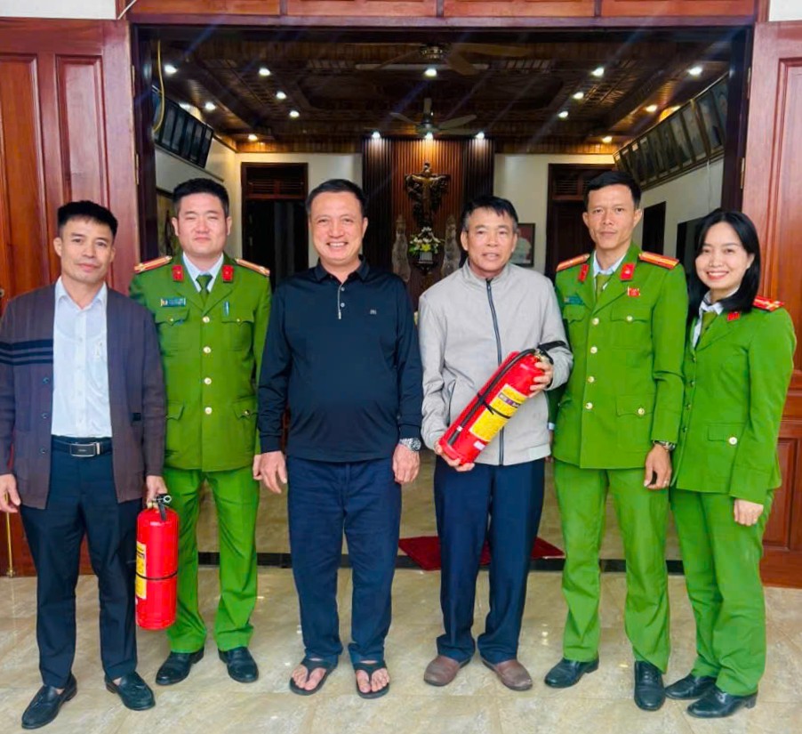 Để hỗ trợ công tác phòng cháy chữa cháy, nhân dịp này, Công an xã đã trao tặng bình chữa cháy và hướng dẫn trực tiếp cách sử dụng cho các chức việc và đại diện giáo dân.