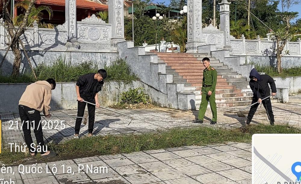 Chiều 21/11, tại Đài tưởng niệm Liệt sĩ phường Nam Hồng (thị xã Hồng Lĩnh), những đôi tay từng bồng bột của nhóm thanh thiếu niên có biểu hiện lệch chuẩn lặng lẽ quét dọn từng lối đi, nhặt từng chiếc lá rơi. Trong không gian trang nghiêm, các em được nhắc lại về sự hy sinh của các thế hệ đi trước, về trách nhiệm phải sống đúng, sống đẹp và biết tự điều chỉnh mình trước những cám dỗ của đời sống hiện đại.