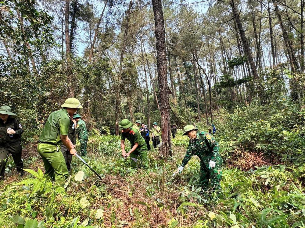 Cùng thời điểm, tại xã Vũ Quang, lực lượng Công an xã đã phát huy vai trò xung kích, phối hợp với các đơn vị liên quan tổ chức ra quân triển khai phương án PCCCR . Với tinh thần chủ động, khẩn trương, cán bộ, chiến sĩ đã trực tiếp tham gia phát dọn thực bì, tu sửa gần 5 km đường băng cản lửa tại các khu vực trọng điểm, góp phần tạo “lá chắn” bảo vệ diện tích rừng đặc dụng trước nguy cơ cháy cao trong điều kiện thời tiết khắc nghiệt. Bên cạnh đó, Công an xã Vũ Quang còn lồng ghép công tác tuần tra, kiểm soát địa bàn với tuyên truyền, vận động người dân ký cam kết chấp hành nghiêm các quy định về PCCCR; đồng thời xây dựng phương án trực chiến 24/24 giờ, sẵn sàng lực lượng, phương tiện theo phương châm “4 tại chỗ”, đảm bảo xử lý kịp thời khi có sự cố xảy ra.