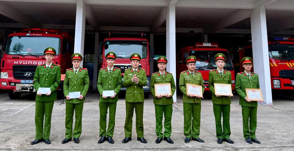 Ghi nhận tinh thần trách nhiệm, sự nỗ lực và kết quả đạt được, Giám đốc Công an tỉnh đã quyết định khen thưởng cho các tập thể và cá nhân có thành tích xuất sắc trong tổ chức thực tập phương án chữa cháy huy động nhiều lực lượng và trong công tác phòng ngừa, ứng phó, khắc phục hậu quả bão số 5.