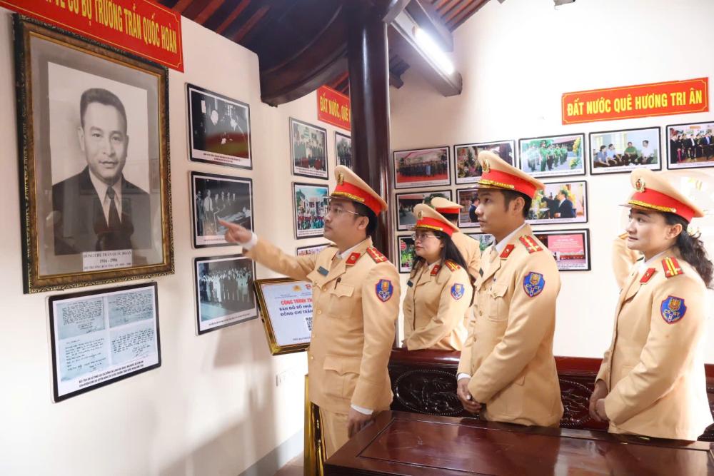 Mở đầu chương trình, Đoàn công tác Phòng Cảnh sát giao thông Công an tỉnh Hà Tĩnh đã đến dâng hương, dâng hoa tại Khu tưởng niệm cố Bộ trưởng Trần Quốc Hoàn – người chiến sĩ cộng sản kiên trung, nhà lãnh đạo xuất sắc của Đảng và Nhà nước, Bộ trưởng đầu tiên của lực lượng Công an nhân dân Việt Nam.
