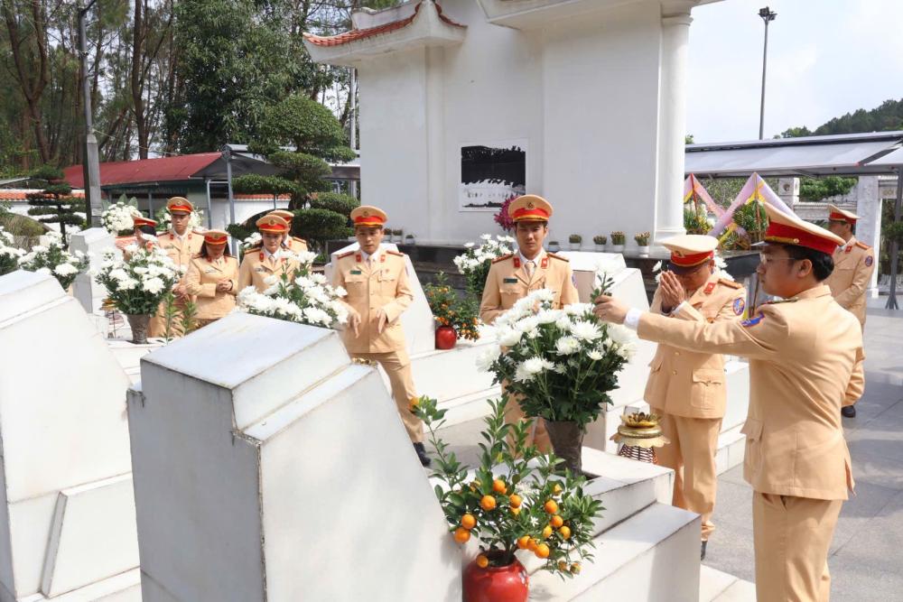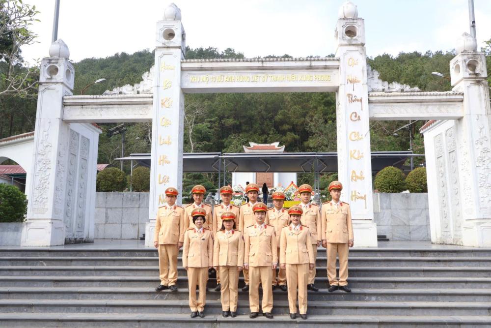 Trước anh linh các anh hùng liệt sĩ, Đoàn công tác kính cẩn nghiêng mình tưởng niệm, bày tỏ lòng biết ơn sâu sắc đối với sự hy sinh to lớn của các thế hệ cha anh, đồng thời nguyện tiếp tục phát huy truyền thống anh hùng cách mạng, đoàn kết, nỗ lực rèn luyện, hoàn thành xuất sắc nhiệm vụ được giao, góp phần bảo đảm trật tự, an toàn giao thông và giữ gìn bình yên cuộc sống Nhân dân.