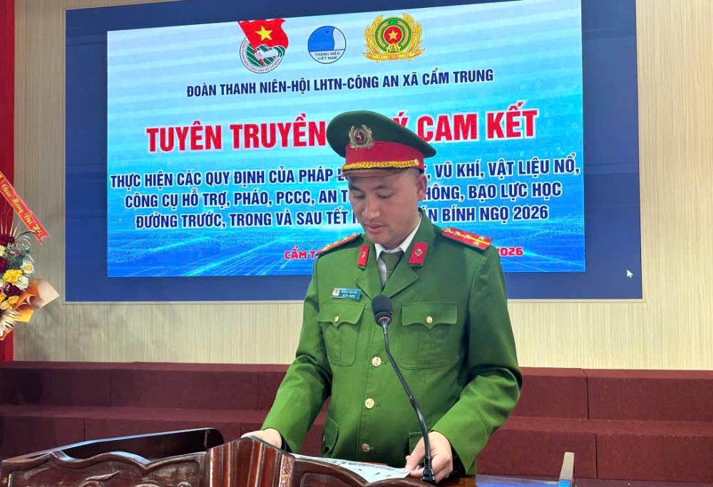 Tại xã Cẩm Trung, Công an xã phối hợp với Đoàn Thanh niên địa phương tổ chức tuyên truyền, ký cam kết chấp hành pháp luật cho đoàn viên, thanh thiếu niên. Nội dung tuyên truyền tập trung vào phòng, chống xuất, nhập cảnh trái phép; bảo đảm trật tự, an toàn giao thông; giữ gìn an ninh, trật tự; phòng, chống pháo nổ, vũ khí, vật liệu nổ và công cụ hỗ trợ. Qua đó góp phần xây dựng địa bàn an toàn, văn minh, hạn chế vi phạm pháp luật trong dịp Tết.