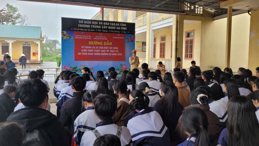 Tại xã Kỳ Anh, Công an xã phối hợp với Phòng Cảnh sát giao thông Công an tỉnh và cơ sở giáo dục nghề nghiệp trên địa bàn tổ chức tuyên truyền pháp luật về trật tự, an toàn giao thông, hướng dẫn kỹ năng điều khiển xe gắn máy an toàn cho học sinh, giáo viên.