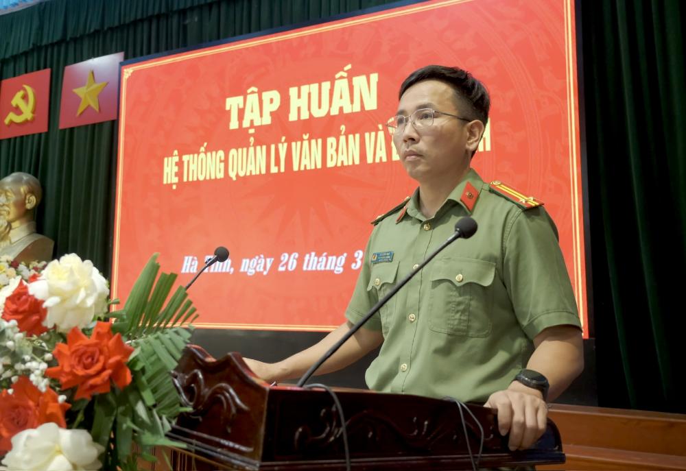 Phát biểu tại lớp tập huấn, đồng chí Trung tá Hồ Công Đạt – Phó Trưởng phòng Tham mưu nhấn mạnh, việc triển khai phần mềm Quản lý văn bản và điều hành có ý nghĩa quan trọng trong công tác cải cách hành chính, chuyển đổi số của lực lượng Công an, góp phần nâng cao hiệu quả công tác chỉ đạo, điều hành, xử lý văn bản nhanh chóng, chính xác, đảm bảo an toàn, bảo mật thông tin.