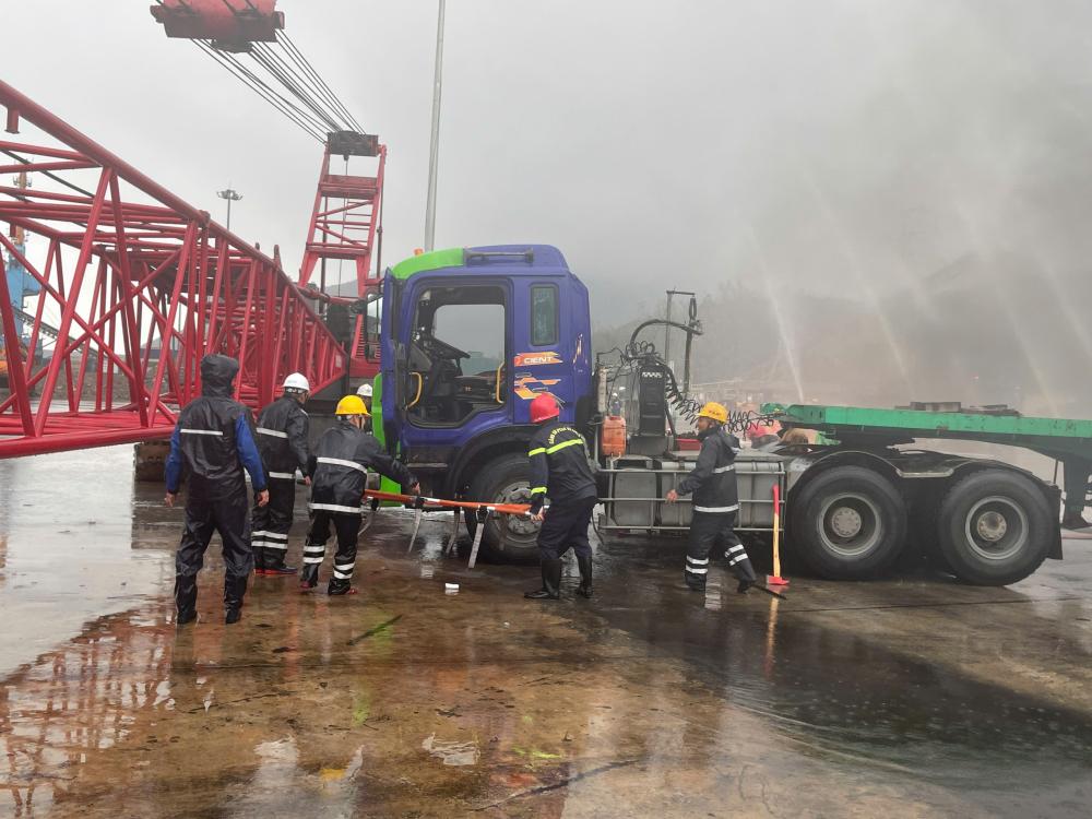 Theo tình huống giả định, vào hồi 15 giờ 00 phút ngày 30/10/2025 xảy ra tình huống tai nạn xe Container trong trong lúc vào xuất nhập hàng tại cầu cảng số 3 bị kẹt chân ga, mất lái dẫn tới lao thẳng vào cầu trục cảng. Sau khi xảy ra tai nạn, cần cẩu trục kết cấu chịu lực giảm, sập đổ khiến 8 người mắc kẹt tại khu vực bốc dỡ, 3 người mắc kẹt trong cabin xe. Tia lửa phát sinh tại ô tô bắt gặp xăng dầu rò rỉ gây cháy. Khói khí độc kèm bức xạ nhiệt cao gây khó khăn cho công tác cứu người bị nạn và triển khai các đội hình chữa cháy, cứu nạn, cứu hộ. Ngay sau khi xảy ra tai nạn, sự cố lực lượng PCCC và CNCH cơ sở đã nhanh chóng triển khai các hoạt động cứu nạn, cứu hộ ban đầu, tổ chức cứu người, cứu tài sản đồng thời báo tin cho chính quyền địa phương và lực lượng Cảnh sát PCCC và CNCH qua số điện thoại 114.