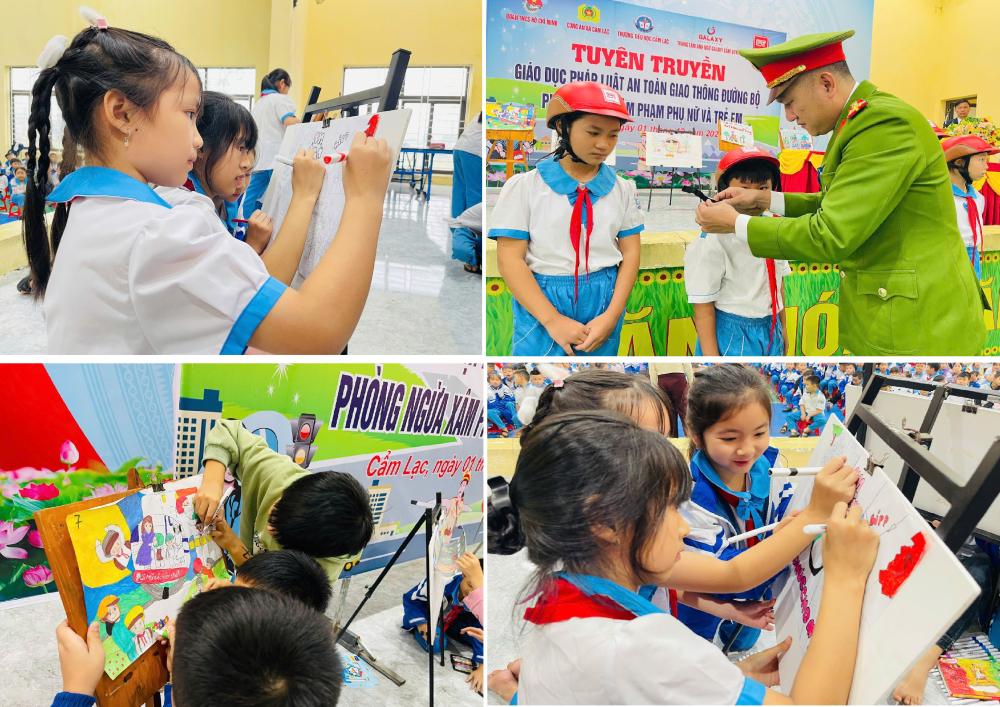 Điểm nhấn của chương trình là cuộc thi vẽ mũ bảo hiểm và đường em đi an toàn giao thông. Với sự sáng tạo hồn nhiên, các em học sinh đã thể hiện những thông điệp ý nghĩa về đội mũ bảo hiểm đạt chuẩn, đi xe đạp an toàn, chấp hành tín hiệu giao thông và xây dựng văn hóa giao thông thân thiện. Hoạt động không chỉ tạo sân chơi lành mạnh mà còn giúp học sinh ghi nhớ kiến thức ATGT theo cách trực quan và sinh động.