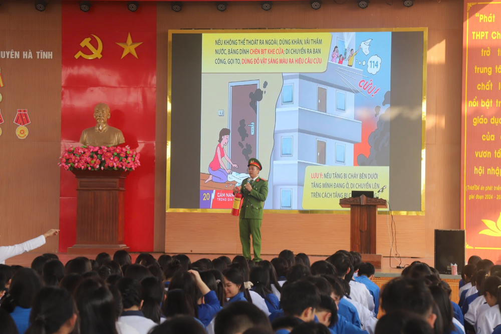 Đại diện Ban Giám hiệu Trường THPT Chuyên Hà Tĩnh đánh giá cao ý nghĩa của buổi tuyên truyền và khẳng định đây là hoạt động thiết thực nhằm nâng cao nhận thức, kỹ năng phòng ngừa và ứng phó cháy nổ cho cán bộ, giáo viên và học sinh, góp phần xây dựng môi trường học đường an toàn, thân thiện.