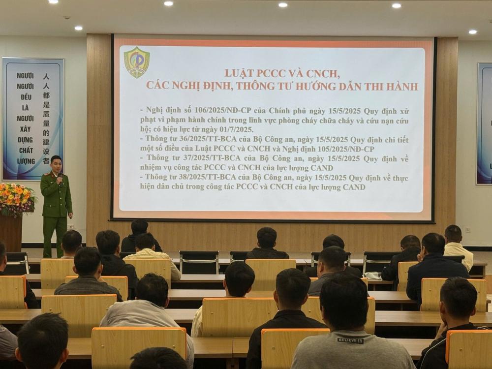 Tại buổi huấn luyện, cán bộ Phòng Cảnh sát PCCC và CNCH đã phổ biến những nội dung cơ bản của pháp luật về PCCC; các nguy cơ cháy, nổ thường gặp trong môi trường sản xuất công nghệ cao, đặc biệt là các rủi ro liên quan đến pin Lithium; đồng thời truyền đạt các kỹ năng xử lý tình huống cháy, nổ ban đầu; kỹ năng tổ chức thoát nạn, cứu người; phương pháp phối hợp cứu nạn, cứu hộ khi xảy ra sự cố; cũng như cách sử dụng, bảo quản các phương tiện chữa cháy tại chỗ.