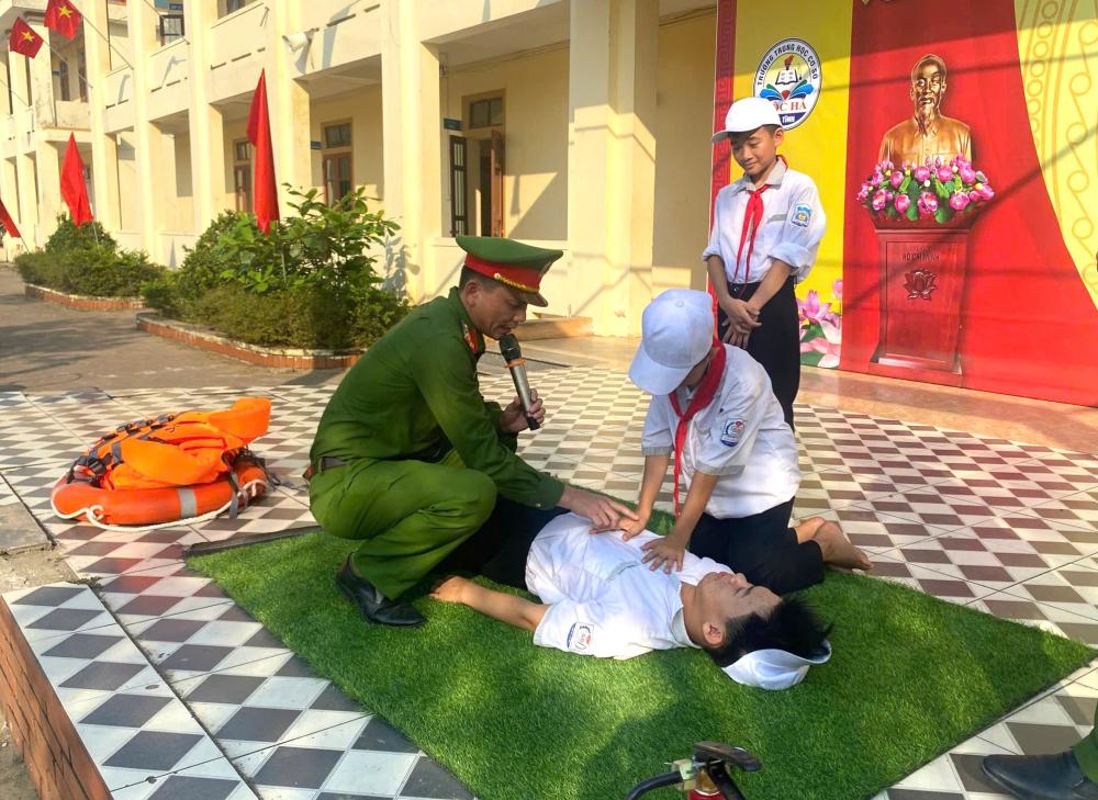 Nội dung hướng dẫn kỹ năng phòng, chống đuối nước và cứu nạn, cứu hộ được nhấn mạnh với nguyên tắc bảo đảm an toàn là trên hết. Học sinh được quán triệt không tự ý xuống nước cứu người khi không có phương tiện hỗ trợ, mà cần nhanh chóng thông báo cho người lớn, lực lượng chức năng, đồng thời sử dụng các vật dụng như phao, dây, gậy để hỗ trợ từ xa. Các em cũng được tham gia thực hành trực tiếp, qua đó nâng cao khả năng xử lý tình huống trong thực tế.