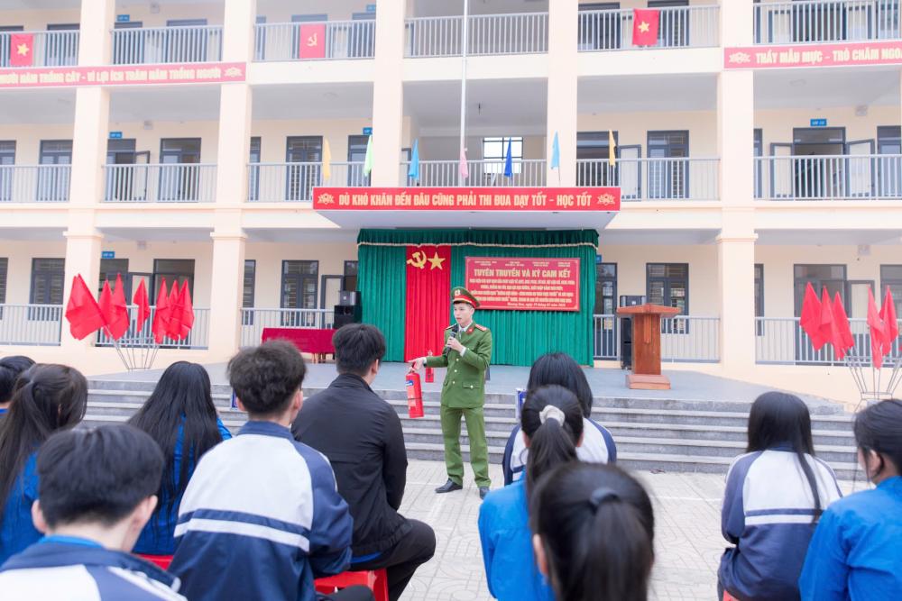 Trong không khí nghiêm túc nhưng gần gũi, buổi tuyên truyền đã mang đến nhiều nội dung thiết thực, sát với đời sống học đường như: quy định của pháp luật về an ninh trật tự, an toàn giao thông, phòng cháy chữa cháy và cứu nạn cứu hộ; công tác quản lý vũ khí, vật liệu nổ, pháo; phòng, chống ma túy, bạo lực học đường; cảnh giác với tội phạm công nghệ cao và xuất nhập cảnh trái phép.
