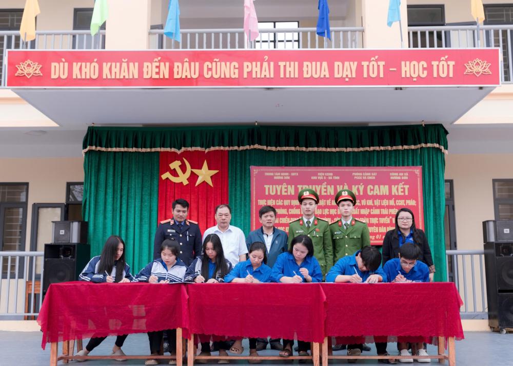 Kết thúc chương trình, đại diện nhà trường, giáo viên và học sinh đã ký cam kết thực hiện nghiêm các quy định của pháp luật, chung tay xây dựng môi trường giáo dục an toàn, văn minh, không tệ nạn xã hội, góp phần giữ vững an ninh trật tự trên địa bàn.