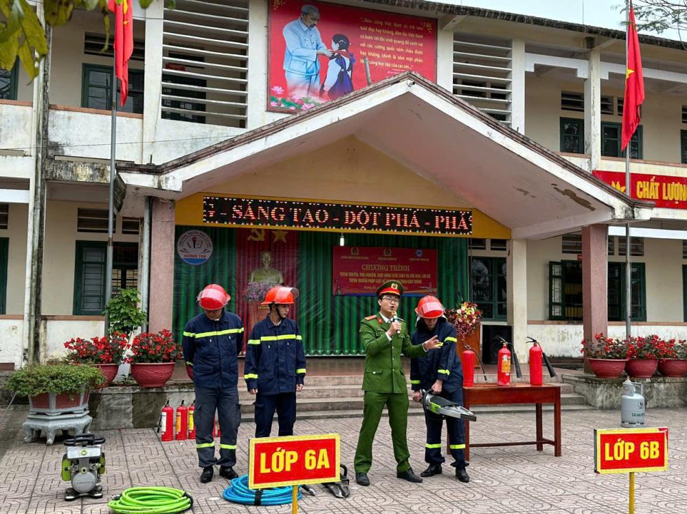 Sáng ngày 29/01, Đội chữa cháy và CNCH khu vực Hương Khê (thuộc Phòng Cảnh sát PCCC và CNCH Công an tỉnh) đã phối hợp Công an xã Hương Đô tổ chức chương trình tuyên truyền, trải nghiệm, thực hành chữa cháy và CNCH cho 32 cán bộ, giáo viên và 542 em học sinh Trường THCS Hương Trà.